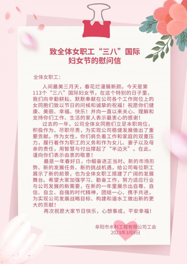 致全體女職工“三八”國(guó)際婦女節(jié)的慰問(wèn)信