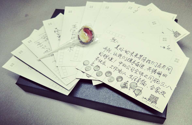 感動(dòng)有時(shí)是一個(gè)眼神、一個(gè)擁抱、一通電話,有時(shí)是一張小小的賀卡,樸素的話語(yǔ),簡(jiǎn)單的祝福。來(lái)自中北集團(tuán)所有男同胞們對(duì)女同志的祝福,小小的賀卡承載著大家之間的信任、理解和包容。