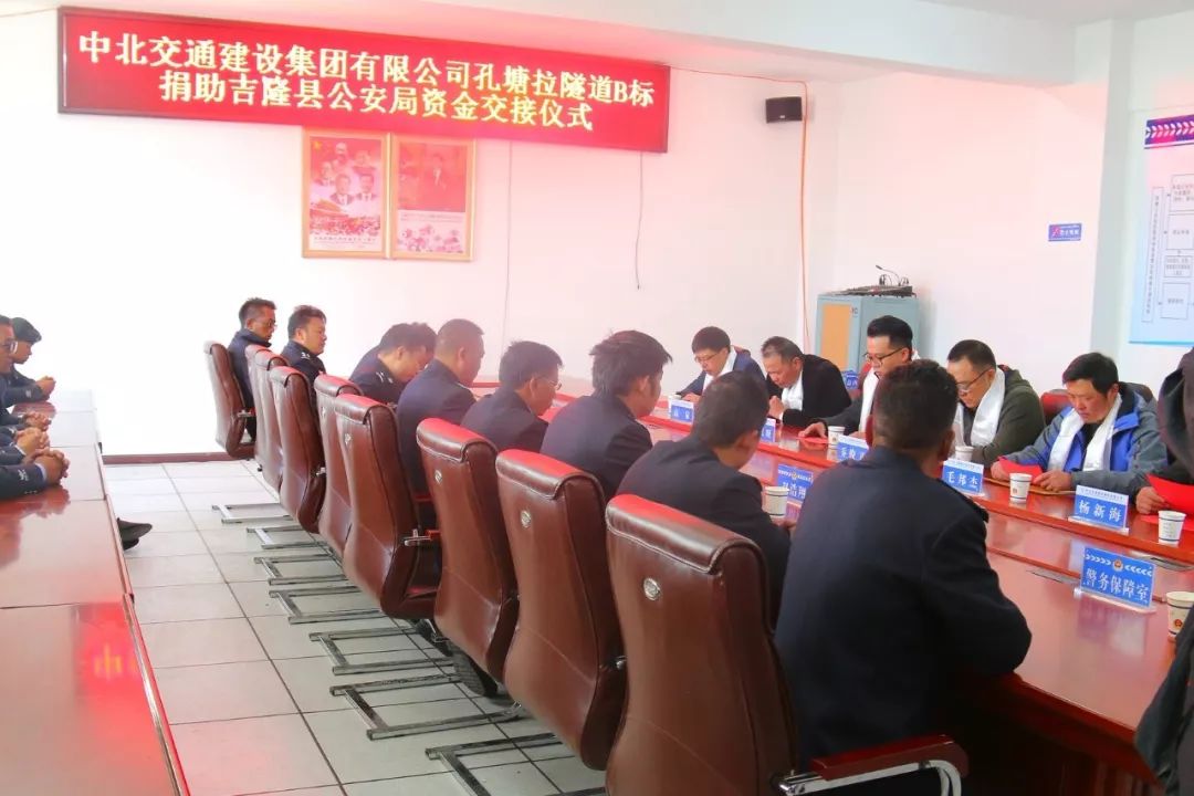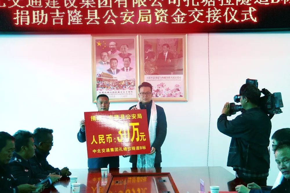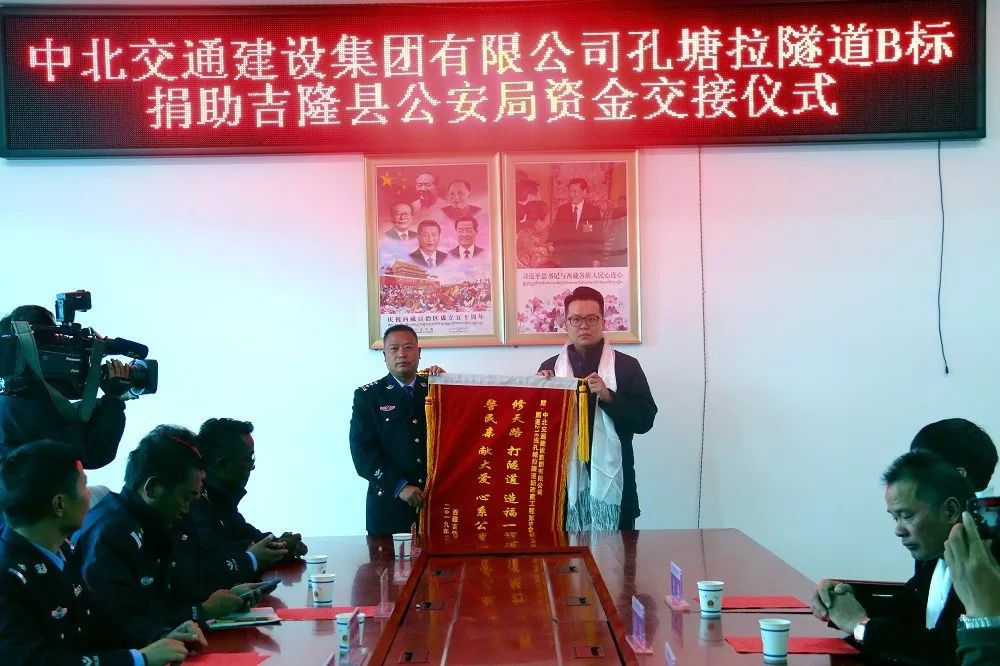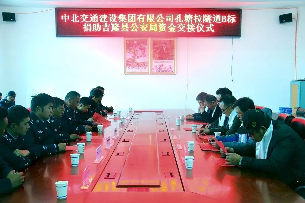 2019年10月12日上午,“中北交通建設(shè)集團(tuán)有限公司孔塘拉隧道B標(biāo)段捐助吉隆縣公安局資金交接儀式”在吉隆縣公安局隆重舉行。中北交通建設(shè)集團(tuán)領(lǐng)導(dǎo)與吉隆縣公安局相關(guān)領(lǐng)導(dǎo)出席了此次捐助交接儀式。