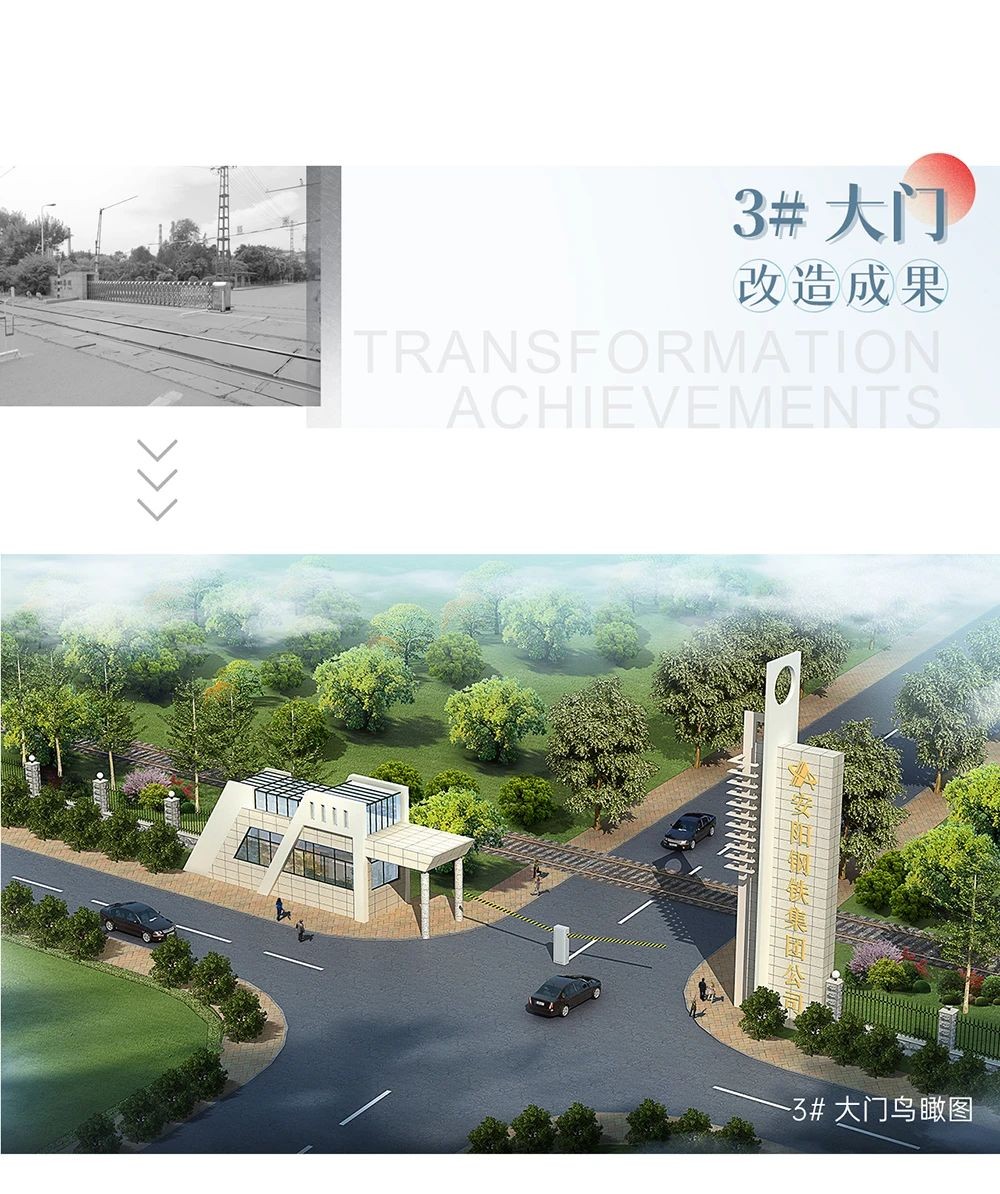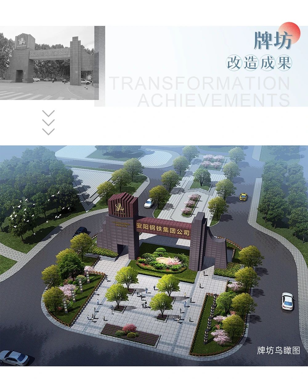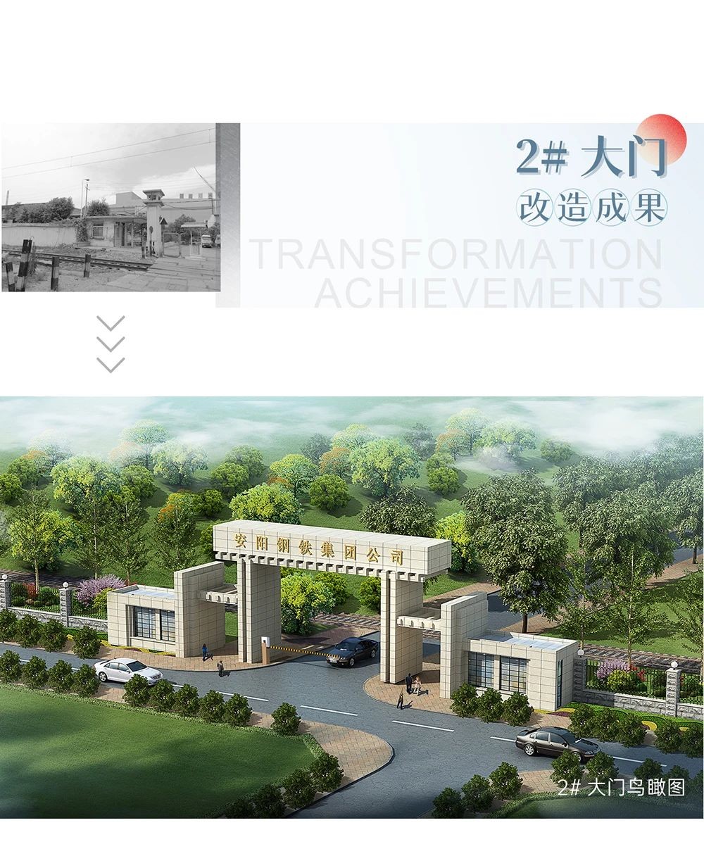 項(xiàng)目概況 :本項(xiàng)目參照標(biāo)志文化和企業(yè)特色,大門造型應(yīng)設(shè)計(jì)的穩(wěn)重,敦厚。這樣才能更好的與周圍的環(huán)境協(xié)調(diào)融合。 提取鋼板為設(shè)計(jì)元素,意在突出行業(yè)屬性,整個(gè)造型,既表現(xiàn)鋼的質(zhì)感,又傳達(dá)安鋼“鼎立中原”的內(nèi)涵。標(biāo)志簡(jiǎn)潔、現(xiàn)代感強(qiáng)、外柔內(nèi)剛。 立面設(shè)計(jì)更多提取安鋼廠區(qū)工作中常見(jiàn)元素,如鋼鐵、機(jī)械元素。使大門更貼近工作環(huán)境并具有企業(yè)特色。給人一種親切感。